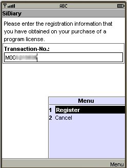 If you have purchased a SiDiary USB stick, you can find the transaction number by starting SiDiary on the stick and then switch into the menu 'Help -> Register'.