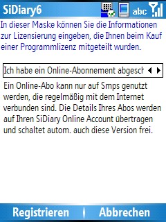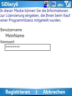 SiDiary Windows Smartphone mit Abo-Lizenznr. freischalten