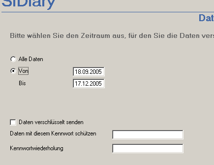 den Assistenten öffnen,mit dem Sie Ihre Daten einfach z.B. an Ihren Arzt oder Ihren Diabetesberater verschicken können. Aber auch wenn Sie mehr als einen PC zur Tagebuchführung einsetzen, kann diese Funktion für Sie sinnvoll sein: Schicken Sie einfach die Daten Ihres Büro-PCs auch an Ihren Heim-PC und/oder umgekehrt.