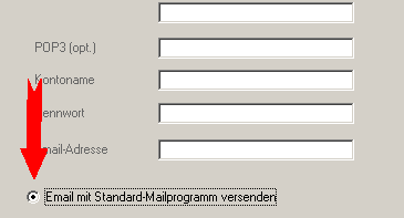 Die Absender-Details für den Emailversand beziehen sich auf Ihr eigenes Email-Postfach. Sie können diese Details beispielsweise in Ihrem Email-Programm nachsehen. Sollten Sie z.B. Outlook oder Outlook Express verwenden, finden Sie die Postfach-Einstellungen unter 'Extras->Email-Konten'. Dort können Sie unter den gespeicherten Konten unter 'Eigenschaften' nachschauen, welcher Servername z.B. als POP-Server eingetragen ist oder welchen Kontonamen Sie verwenden müssen.