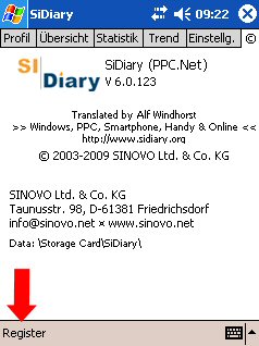 5. Install SiDiary version 6 on your mobile device (cell phone, Smartphone or PPC). Start it there and register as you have registered on your PC.