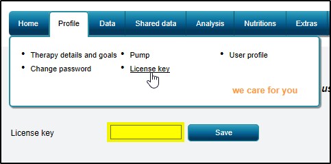 6. Register SiDiary-Online: on SiDiary-Online under 'Profile ->License-key'). Now the ads will disappear and you can synchronize data of more than one week.