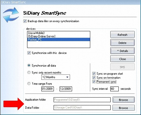 7. In the PC version of version 6, menu 'Extras ->SmartSync-Settings': for the Pocket PC or the Windows Smartphone set up the paths to the program folder and the data folder (for questions please use the key F1 on your keyboard to benefit from our excellent help function)