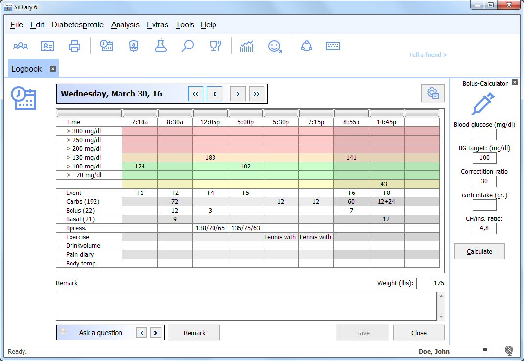 - Blood glucose readings can be marked with - or -- as a normal or a heavy hypoglycemia. These inputs can even be used without a monitored BG level.