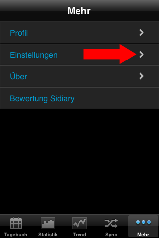 In der iPhone-App klicken Sie bitte unten auf 'Mehr >>Einstellungen >>Synchronisation'