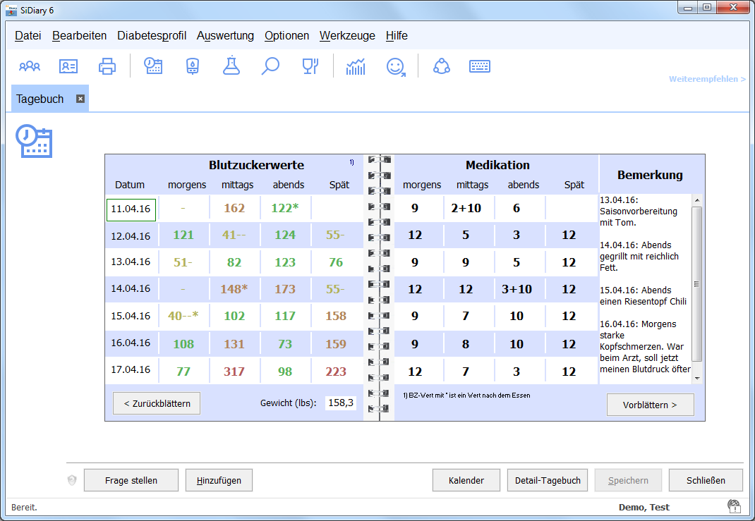 Mit einem Tagebuch - wie sie es mit SiDiary führen können - sind Sie in der Lage, Ihre Therapiebemühungen und -erfolge zu dokumentieren. Insbesondere wenn es um die Verschreibung von Teststreifen geht, kann das ein nützliches Argument für die Verschreibung sein.