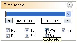 In the above example all boxes except for Tuesday are activated, which means the Tuesday will not be included in the selection.
