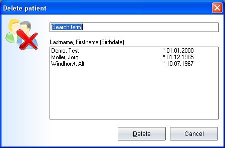the list. Mark the name of the patient by clicking and click then the button Delete. The patient is now completely