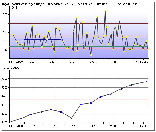 Und mit SiDiary 6 kann man die aus dem Schrittzähler importierten Daten grafisch schön und übersichtlich darstellen: